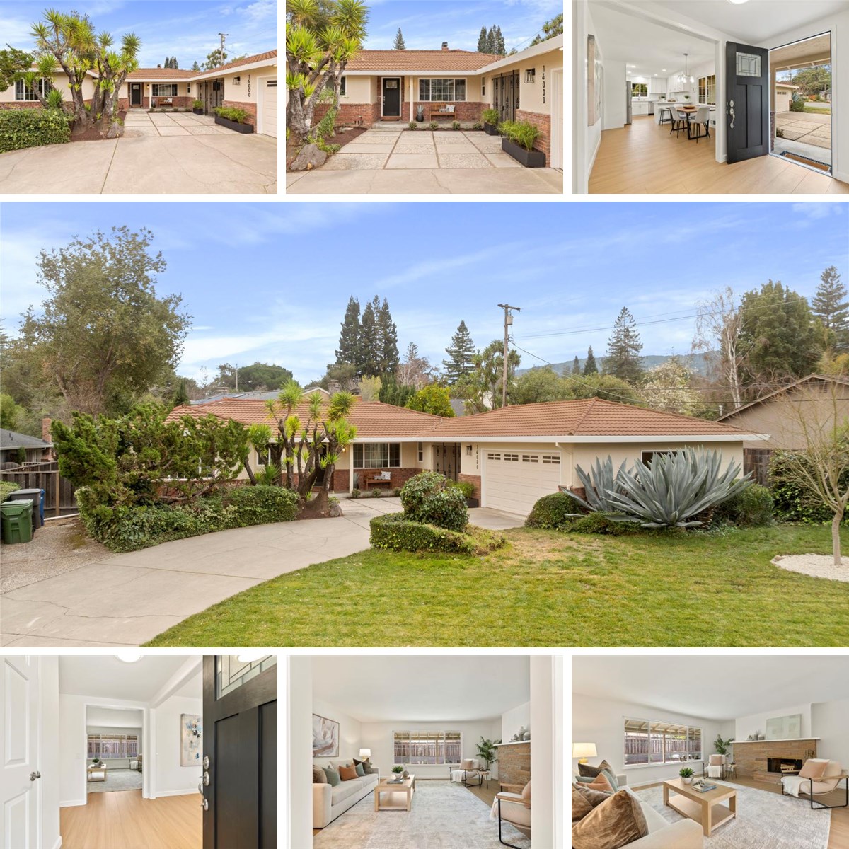 Ideally located in the highly coveted Golden Triangle area of Saratoga, this beautifully maintained single-story home with approx 1,974 square feet offers 3-bedrooms and 2 1/2 bathrooms. The gorgeous eat-in kitchen is a chef's delight, featuring quartz countertops, stainless steel appliances, and new cabinetry. The home boasts separate family and living rooms, each with a cozy wood-burning fireplace. This ideal floor plan offers a wonderful flow, with the bedrooms, including the spacious primary suite, located on one end of the home. On the opposite end of the home just past the kitchen is a large laundry/utility room with a pantry and the convenient 1/2 bath. Situated on a generous approx 10,200 square foot lot, the private rear yard is highlighted by a covered patio, sparkling pool, and mature fruit trees. Other amenities include a large detached 2-car garage accessed by a covered breezeway, central heating and A/C, and award-winning Saratoga Schools. Don't miss the opportunity to make this Saratoga gem your own!